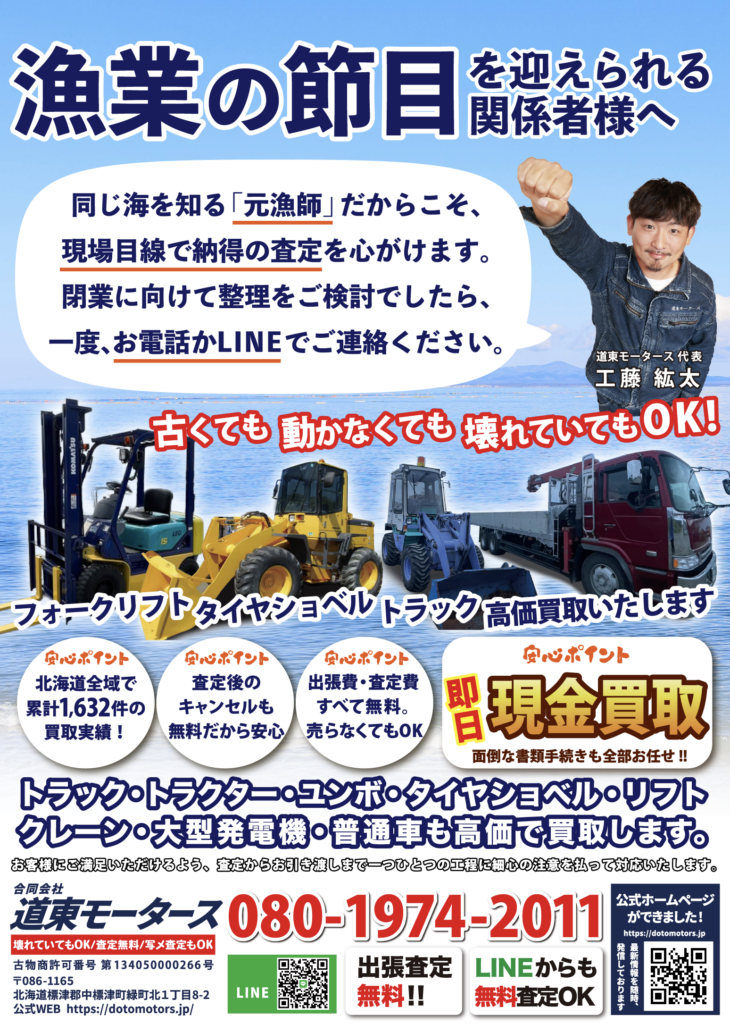 道東モータースでは、北海道全域を対象に中古機械・車両の買取を行っております。